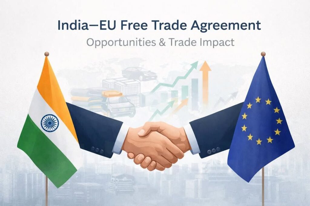 भारत के प्रधानमंत्री श्री नरेंद्र मोदी ने मंगलवार को भारत और यूरोपीय यूनियन के बीच ऐतिहासिक FTA डील की घोषणा की और बोला कि यह समझौता लोकतंत्र और कानून के शासन के प्रति उनकी सजा को प्रतिबद्धता मजबूत करता है।